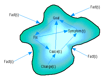 Facts define the context or environment for the Goal, or within which the Symptoms, Changes, and Causes are relevant. Facts essentially represent a constant context which remains unchanged after the fix is applied. |