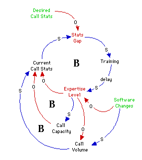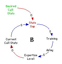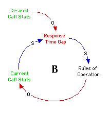 indicates a balancing loop. Balancing loops seek equilibrium and
