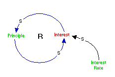 Consider the interaction between the principle and the interest in a savings account. The amount of the principle, in conjunction with the interest rate, produces interest. The interest increases the principle, which in turn increases the interest. Reinforcing loops are the structures of growth.